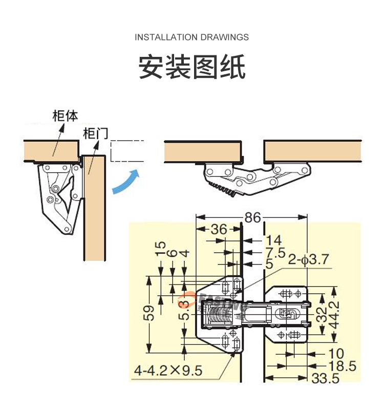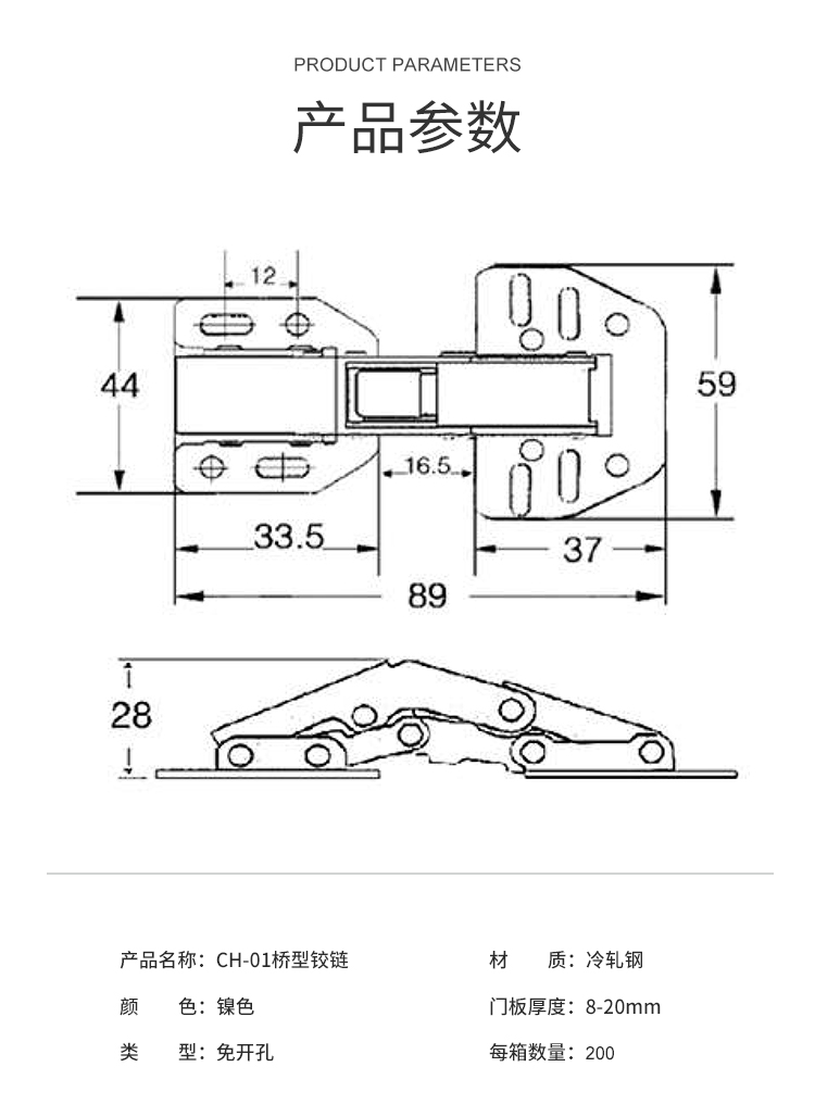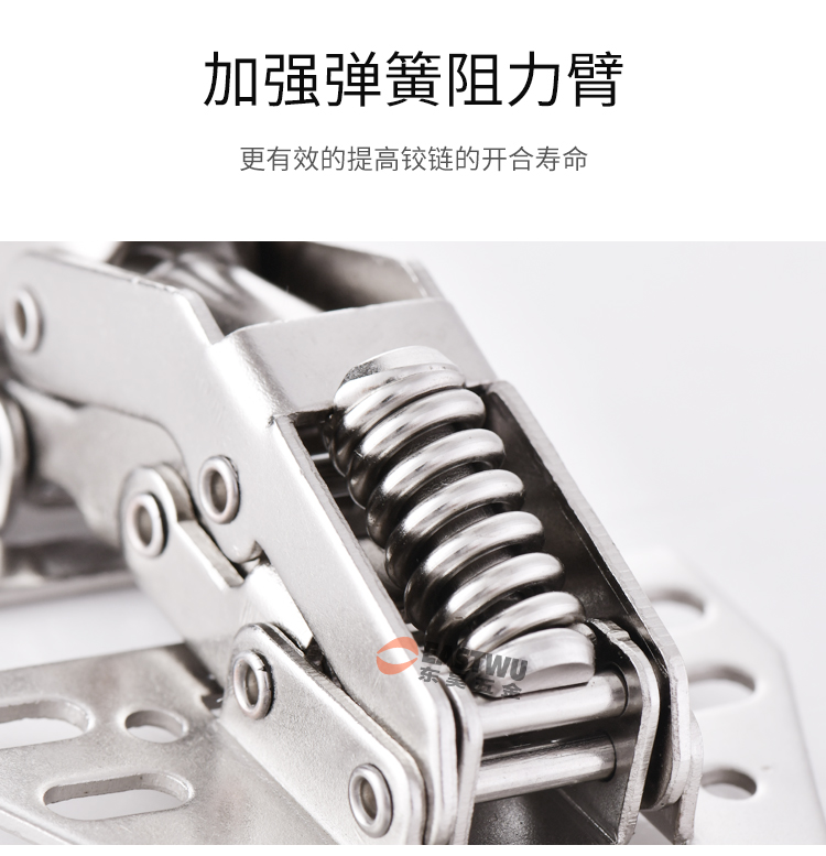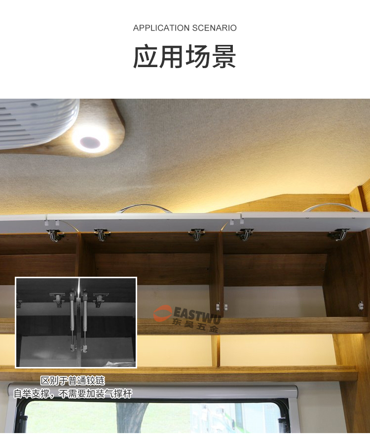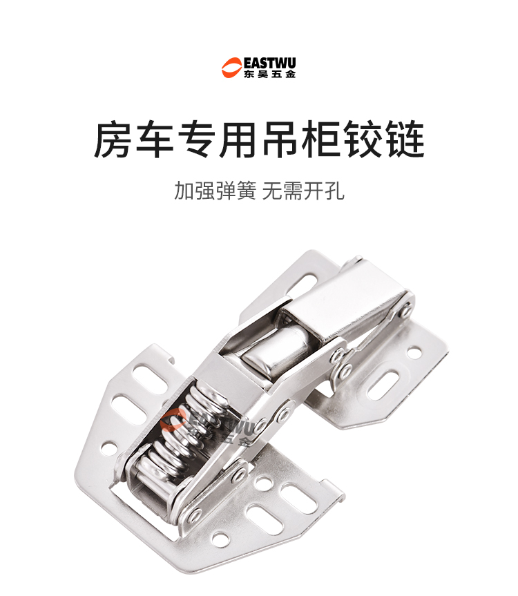 冷軋鋼普通吊柜鉸鏈 免開孔 無需加裝氣撐 柜門自動撐起 適用門厚8-20mm 開啟角度90° 使用范圍房車吊柜、衣柜等