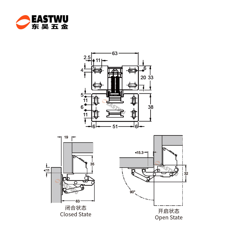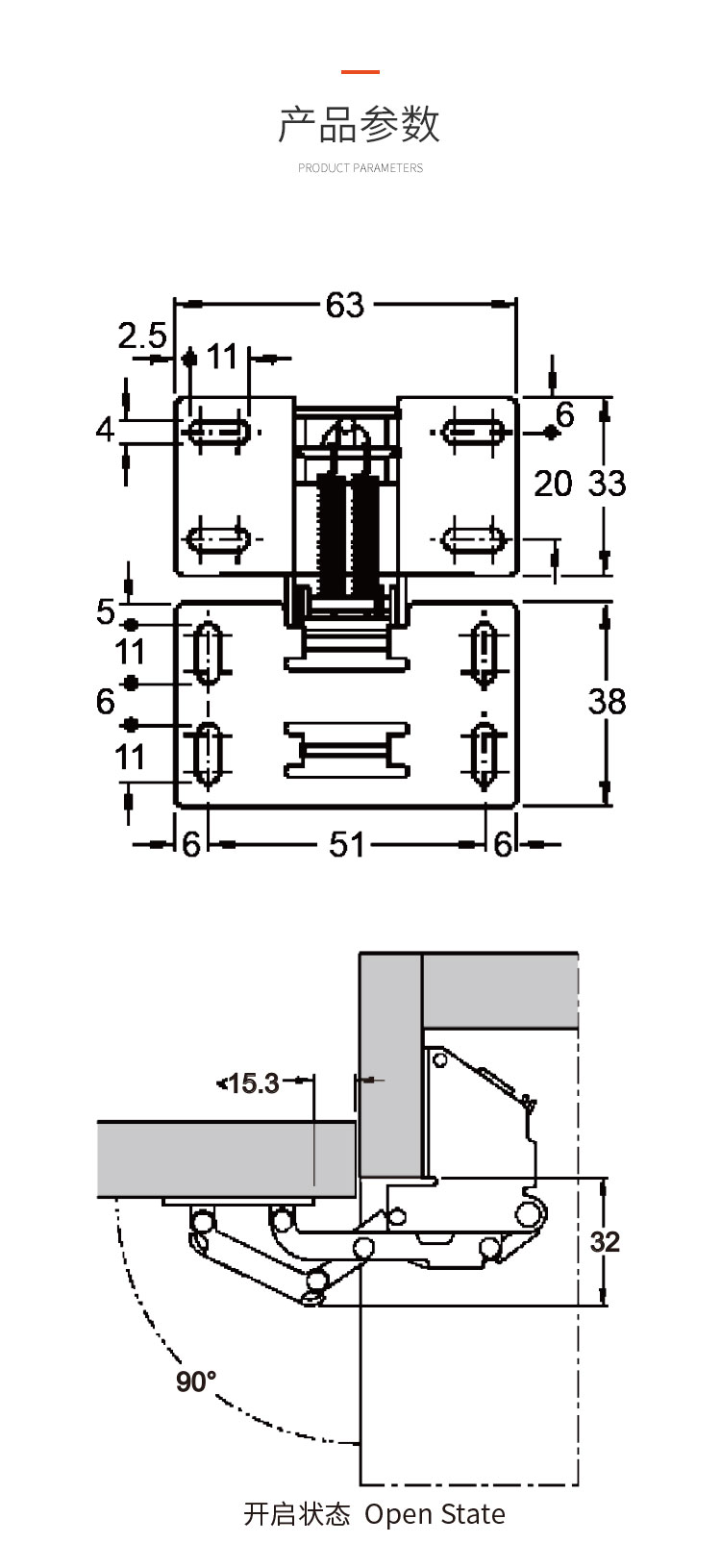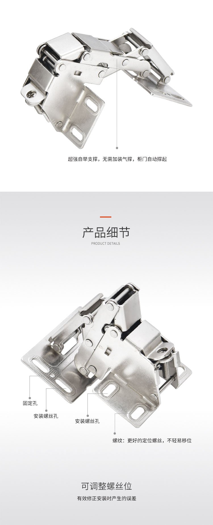 特點(diǎn):無(wú)需加裝氣撐,柜門(mén)就能被鉸鏈撐起