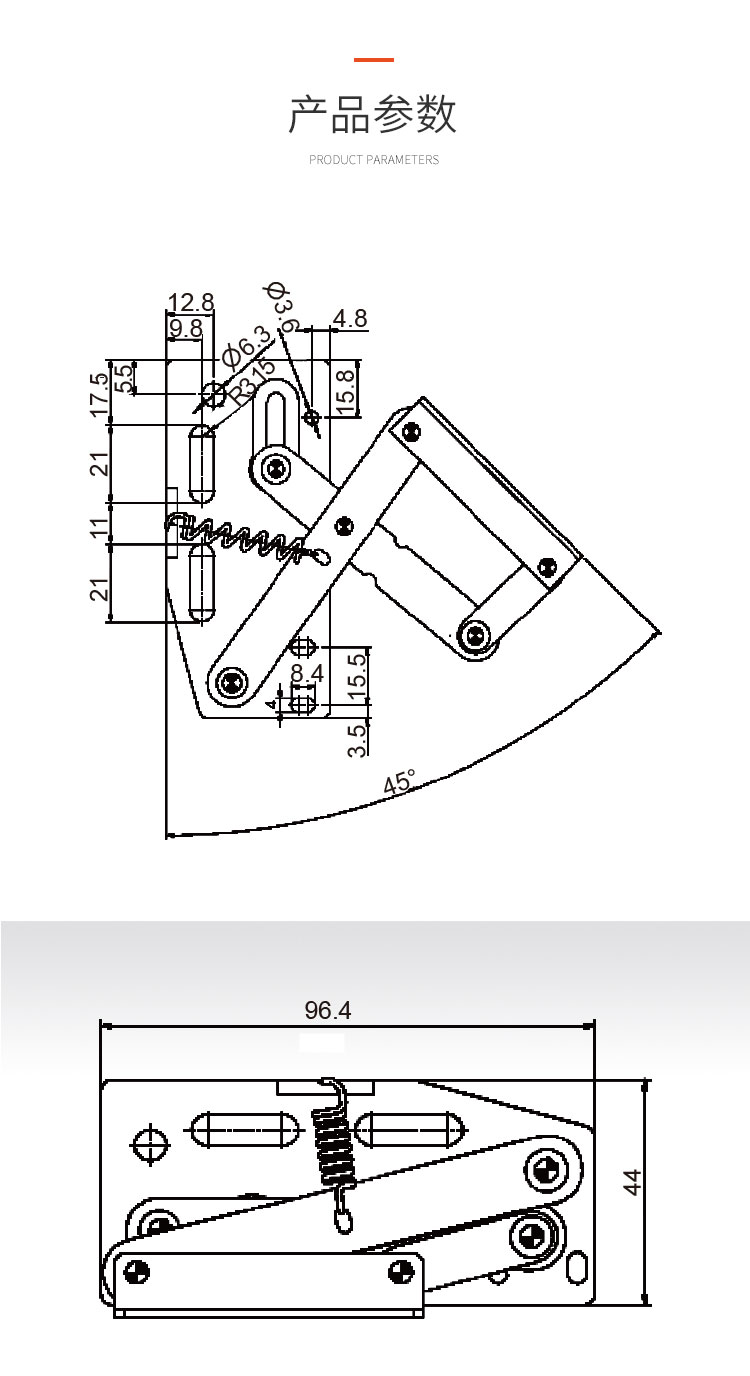 特點(diǎn):無需加裝氣撐,柜門就能被鉸鏈撐起