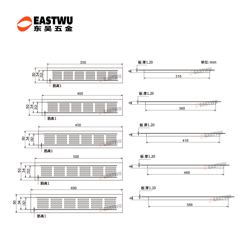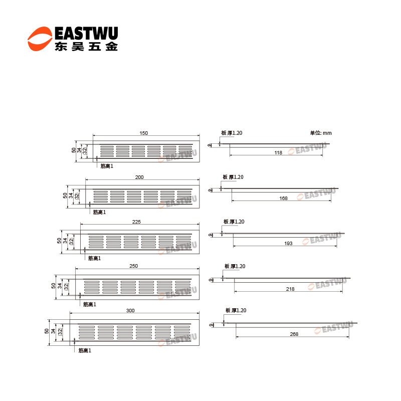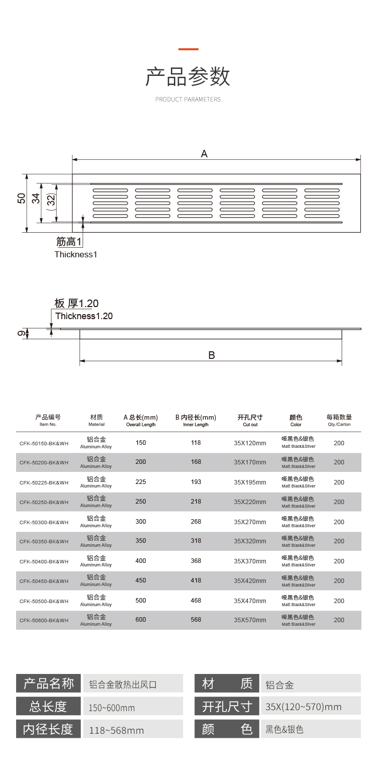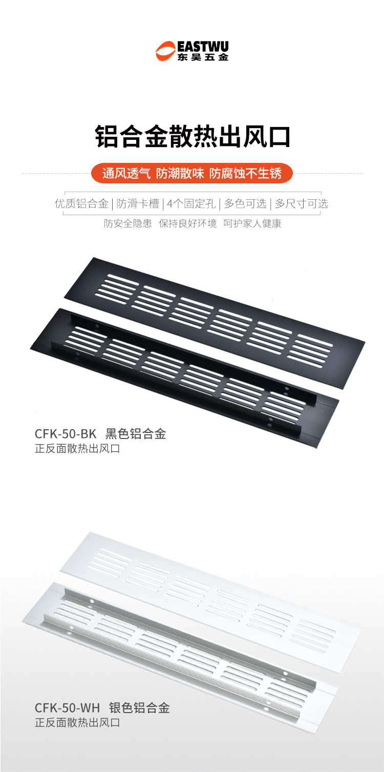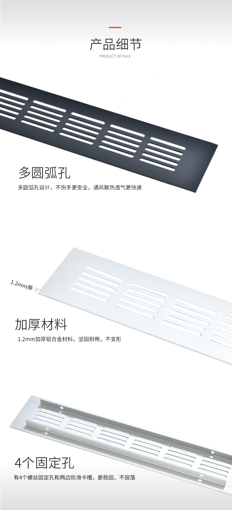 鋁合金散熱出風(fēng)口,加強空氣流通,散熱出風(fēng)快,長度和顏色均可定制 寬50MM1.2MM厚