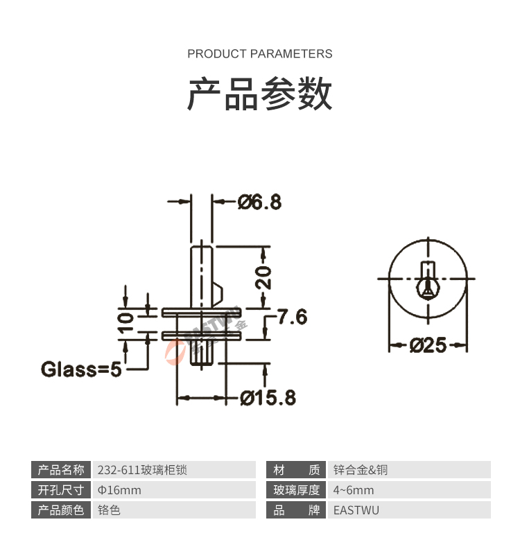 鉻色,開孔尺寸16MM適用玻璃厚度:4-6MM