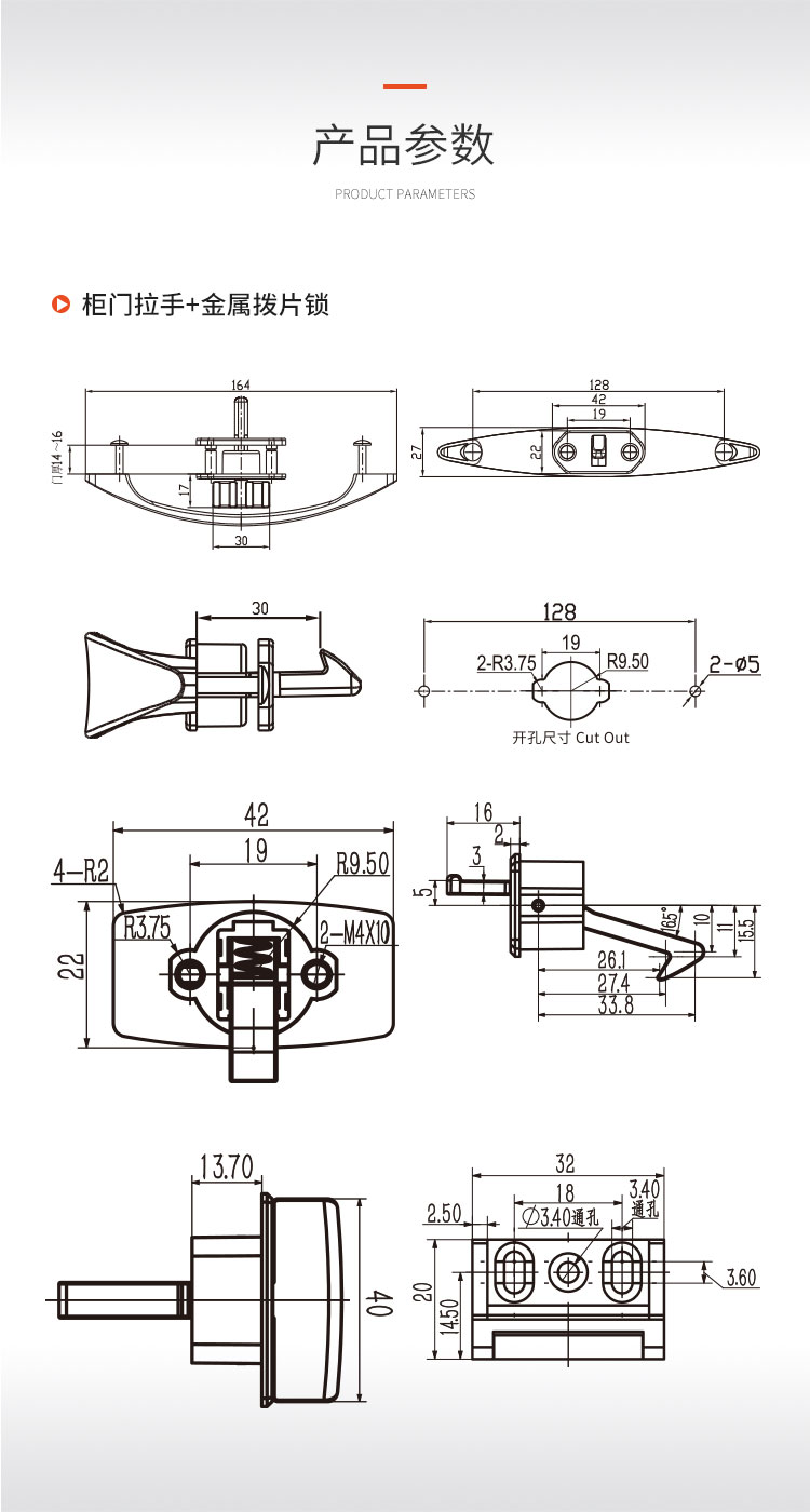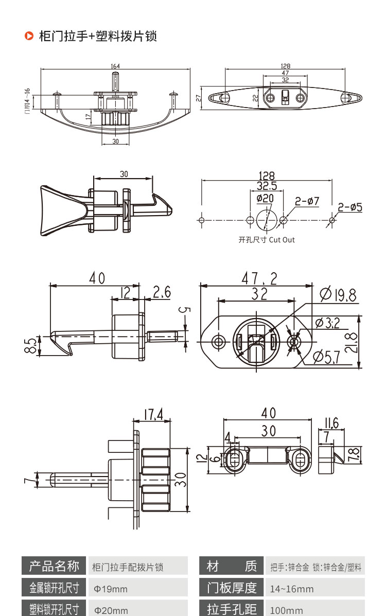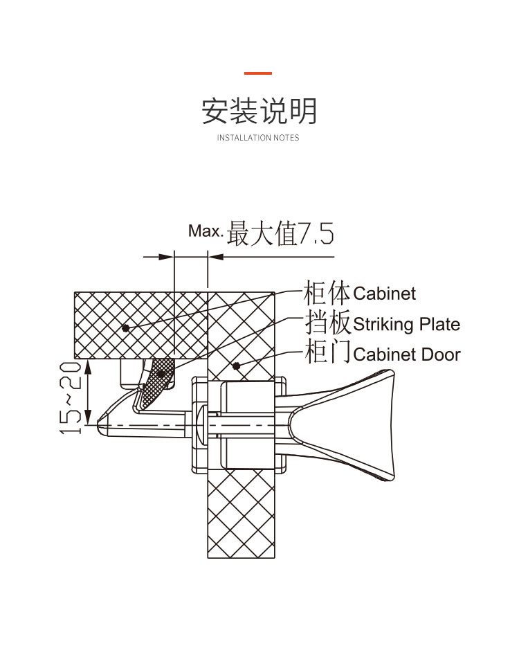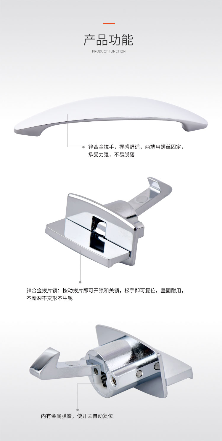 ·達中性鹽霧(NSS)測試200小時10級要求以上的檢驗,高于行業(yè)4倍以上耐腐標準 ·材質(zhì):鋅合金&尼龍 門板厚度:14~16mm 開孔尺寸:Φ:20mm