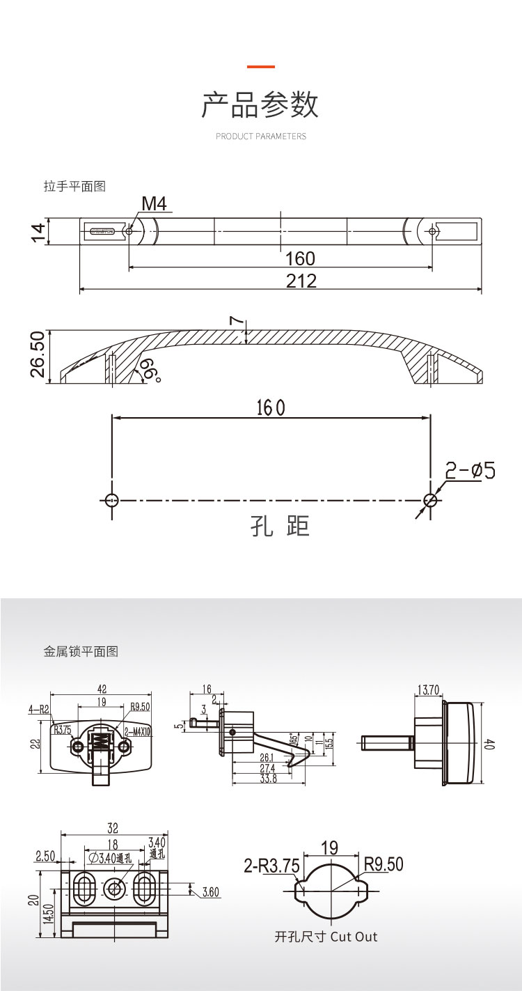 柜門拉手可配塑料搭扣鎖或金屬搭扣鎖,拉手和金屬搭扣鎖顏色可選,開孔尺寸?19mm 開關(guān)輕盈,手感舒適,外觀漂亮