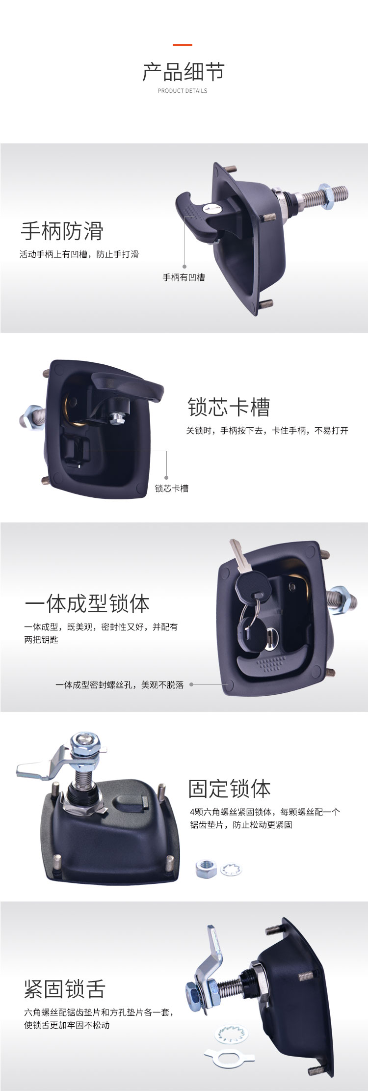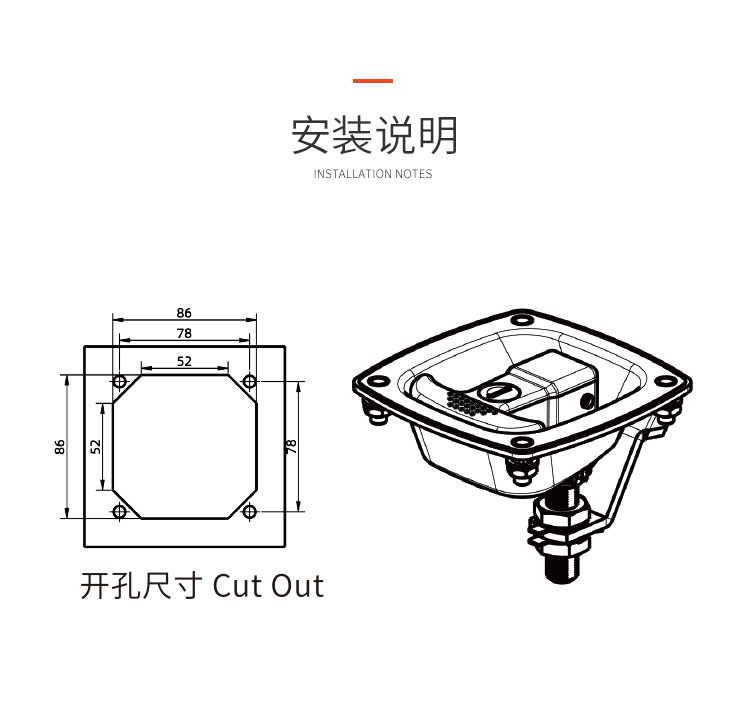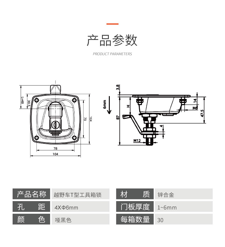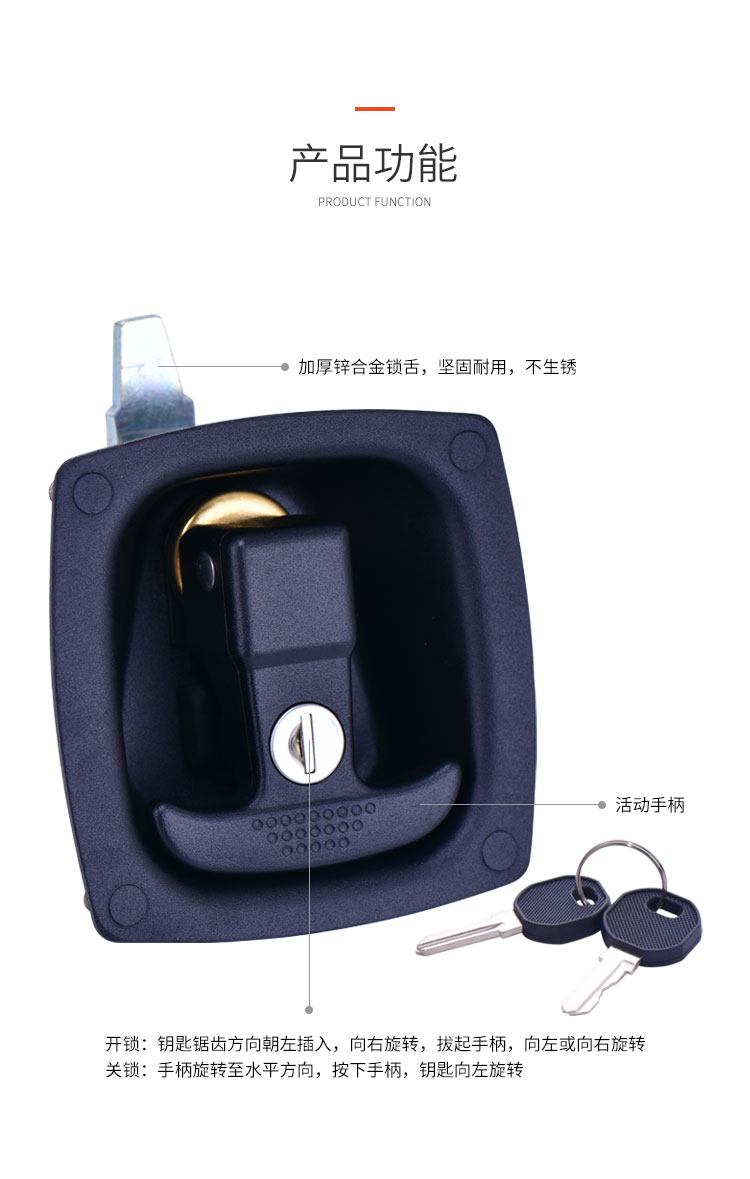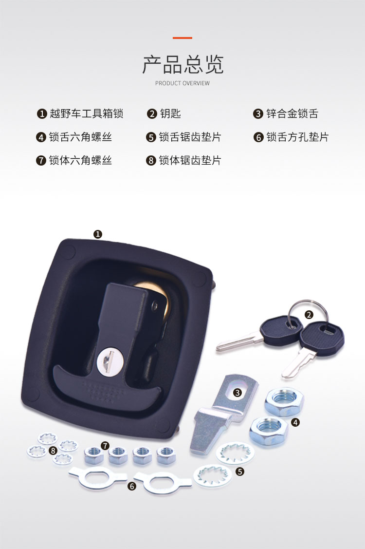 越野房車工具箱鎖 鋼&鋅合金材質(zhì) 開關(guān)順暢 外觀精致 孔距4*φ6mm 開孔尺寸52*52mm 適合門厚1-6mm